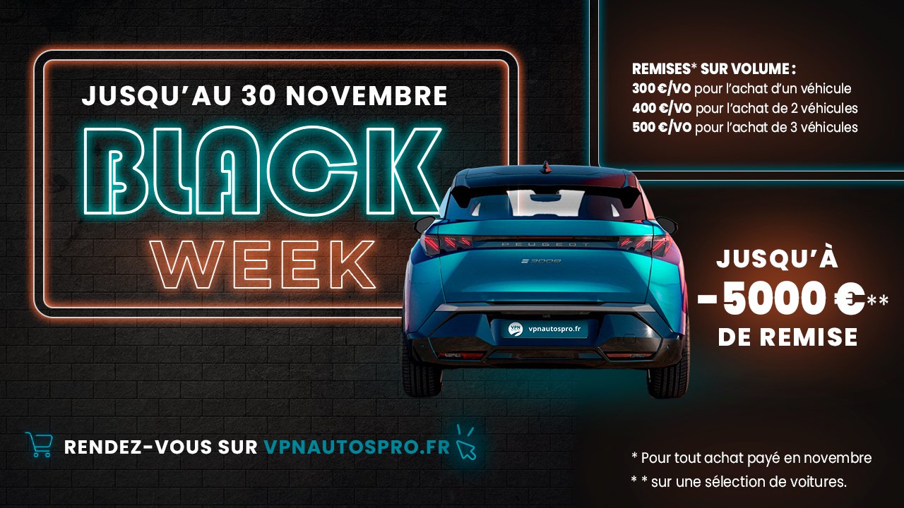Du 22 au 30 novembre, profitez de notre Black Week exclusive avec des remises exceptionnelles et des avantages qui font la différence. C’est le moment idéal pour renouveler ou enrichir votre parc automobile !